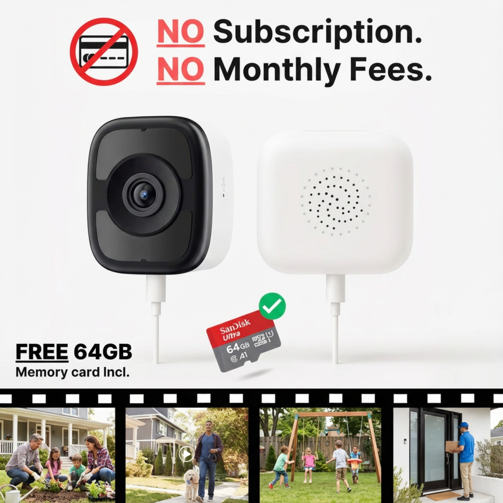 No monthly fees — microSD storage. Access all features without paying a subscription